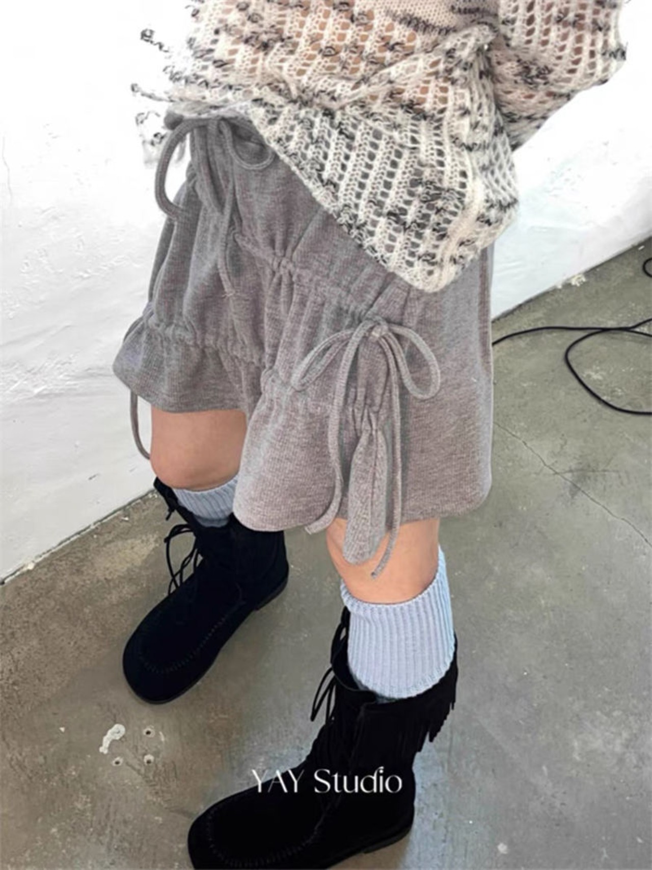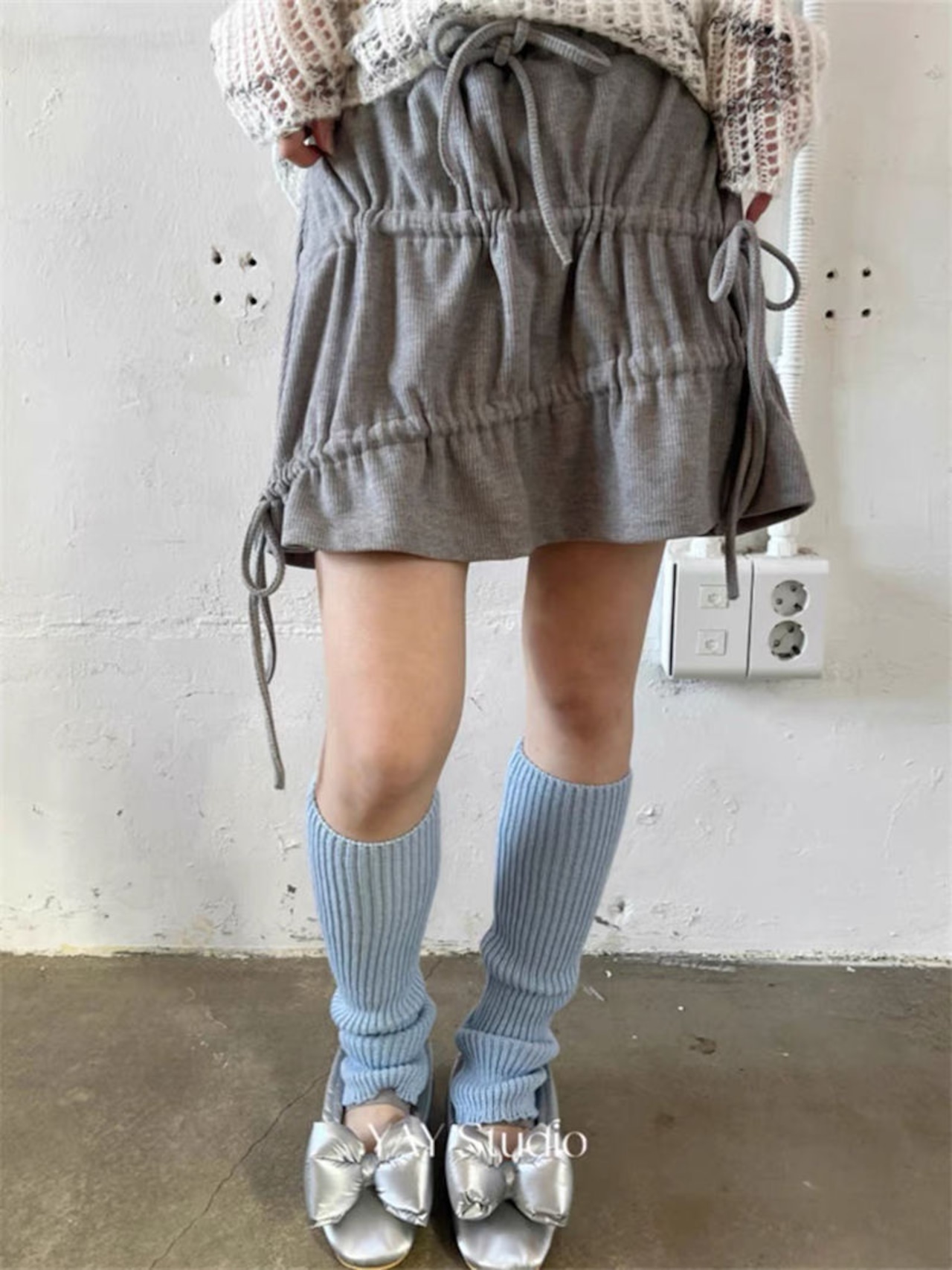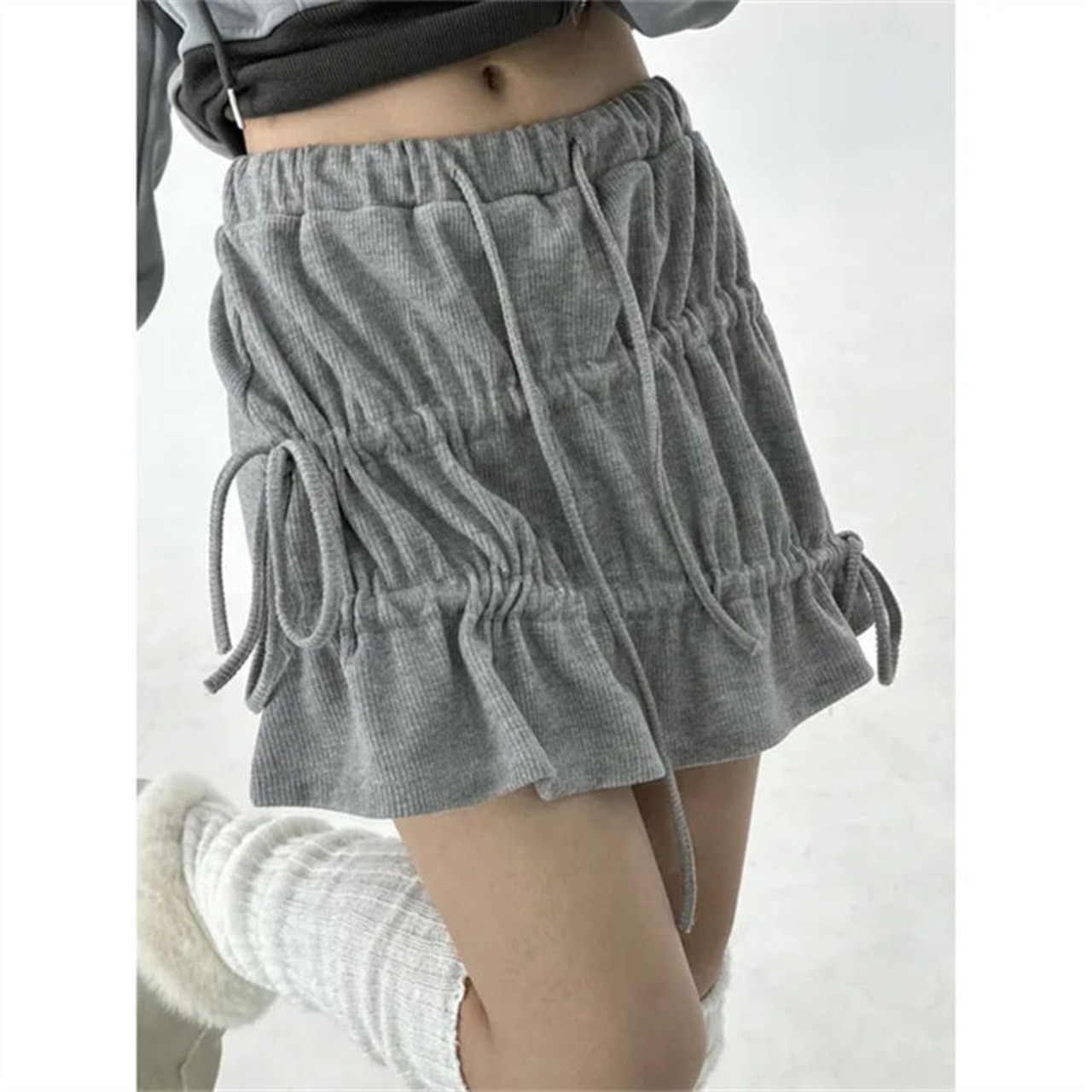 ミニ スカート シャーリング ギャザー リボン 韓国 バレエコア ストリート系 ガーリー レディース 8SK-9