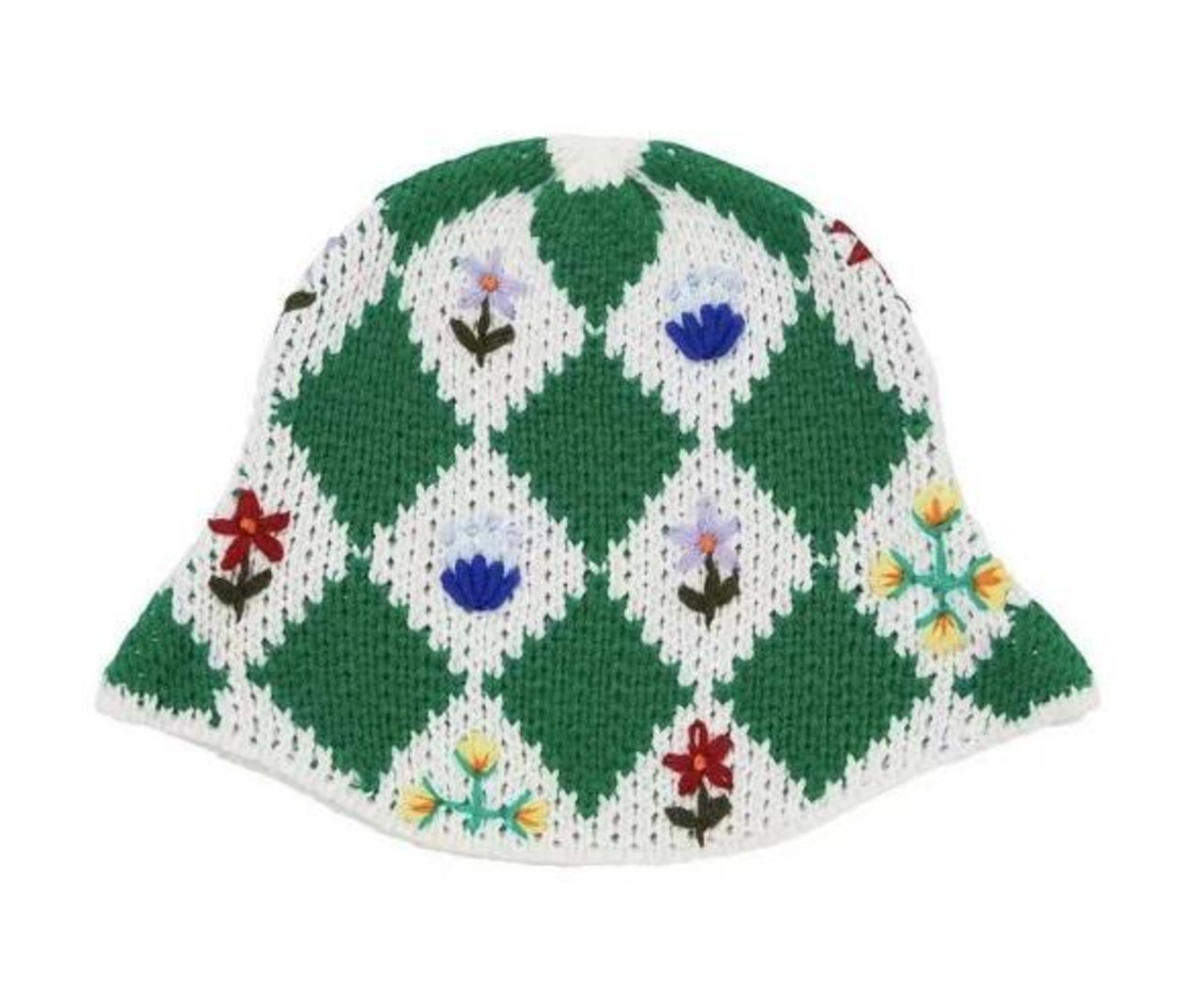 ビーニー ニット帽 花柄 ハット チェック柄 帽子 韓国 ストリート系 Y2Kファッション ダンス 衣装 K-POP レディース 6ACC-146