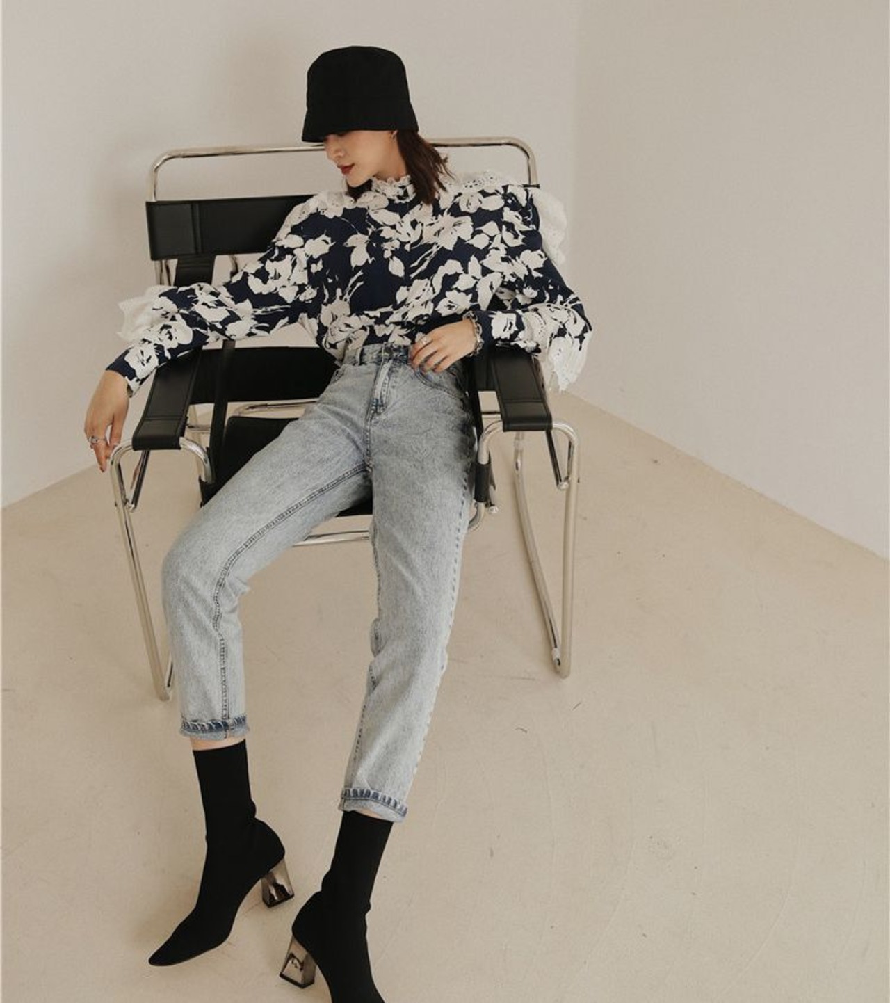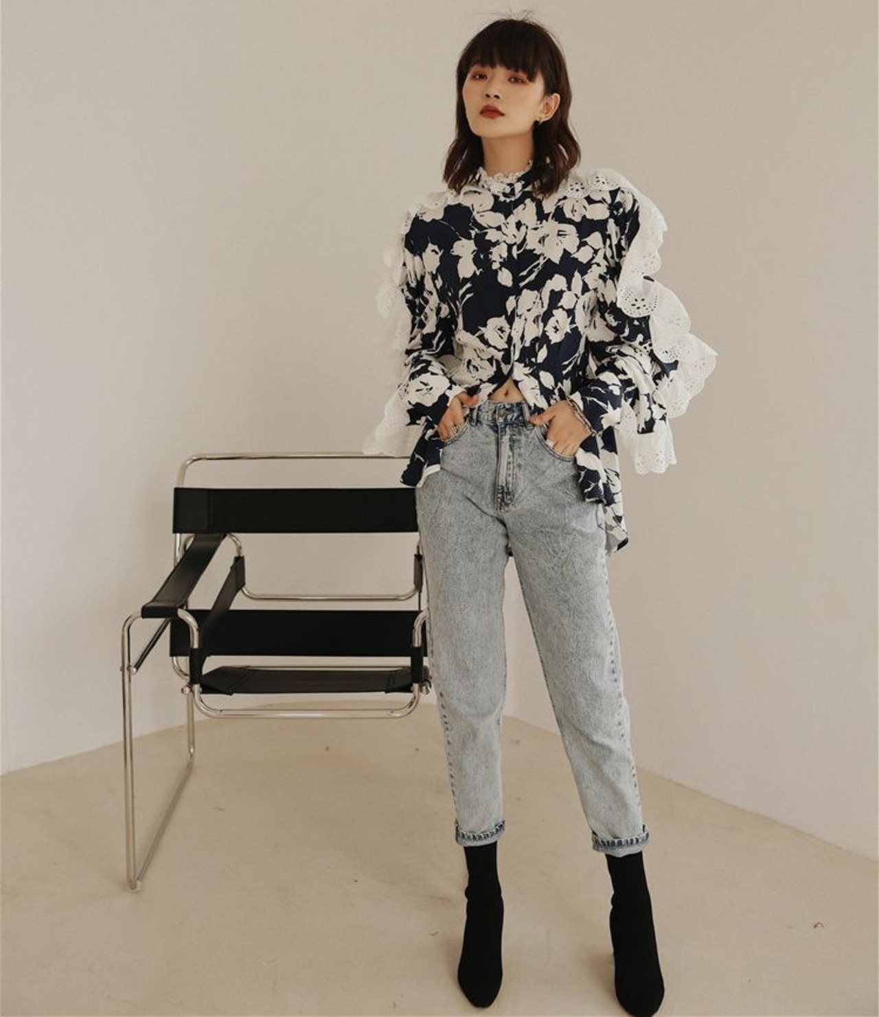 花柄 ブラウス レース フリル 長袖 韓国 ストリート バレエコア トップス レディース 6T-134