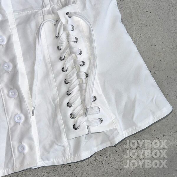 編み上げ レース ブラウス 半袖 フレンチスリーブ コルセット 韓国 バレエコア ストリート系 夏 レディース 7T-127