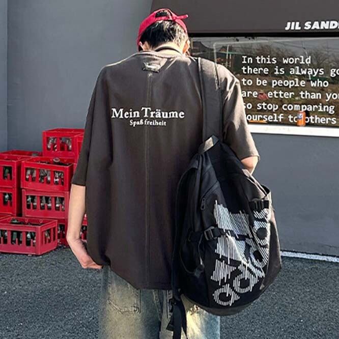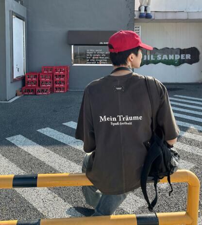 韓国 ストリート系 バック プリント ロゴ 半袖 Tシャツ ダンス 衣装 K-POP HIPHOP グランジ レディース ユニセックス 8T-135