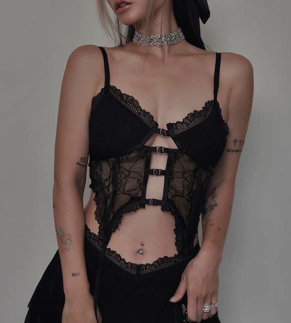 レース ビスチェ キャミソール アシメ 変形 韓国 ストリート系 モード系 インナー 黒 レディース 8T-160