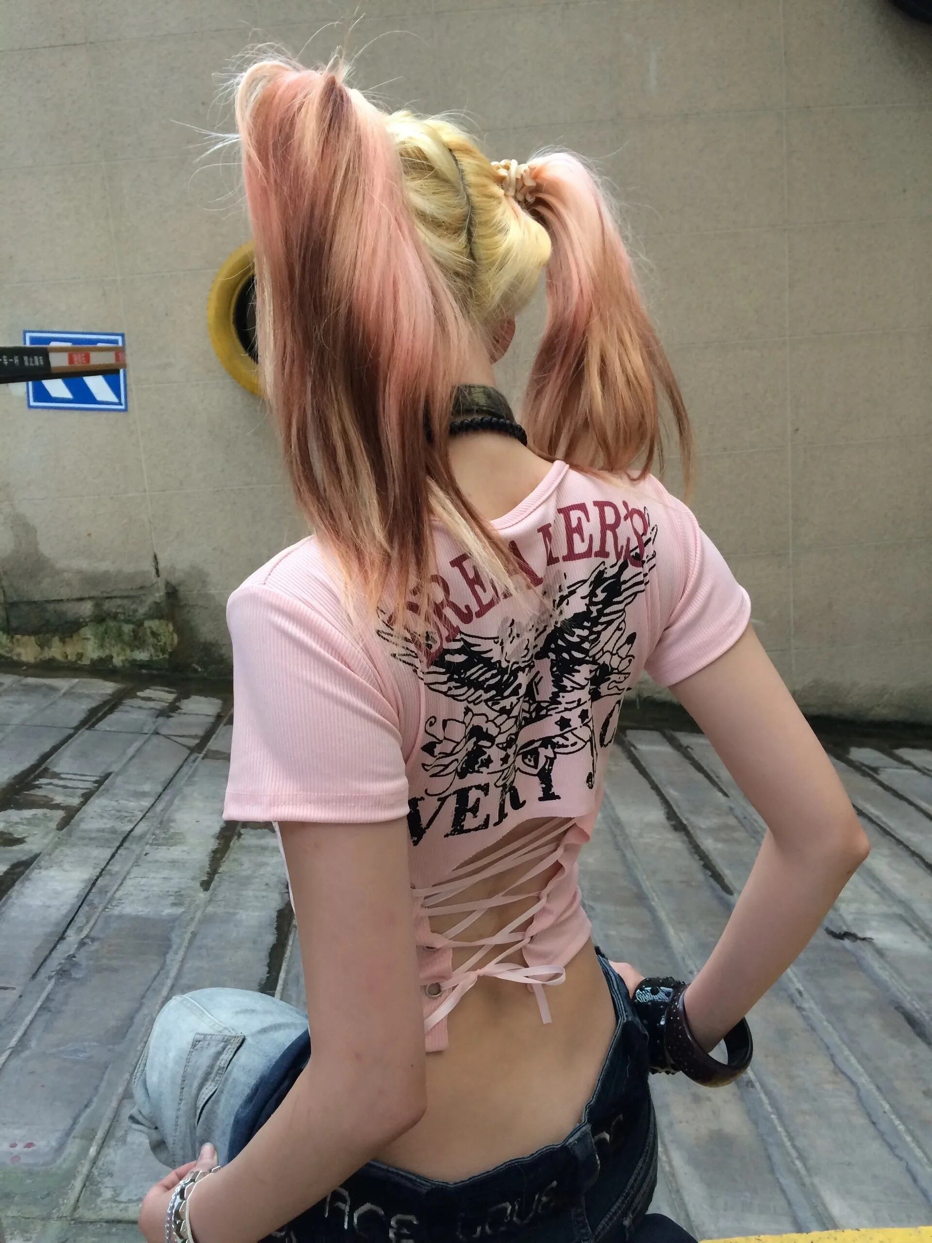 編み上げ ロゴ Tシャツ 半袖 背中あき 韓国 ストリート Y2K ダンス 衣装 K-POP ギャル トップス レディース 8T-262