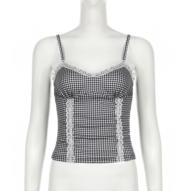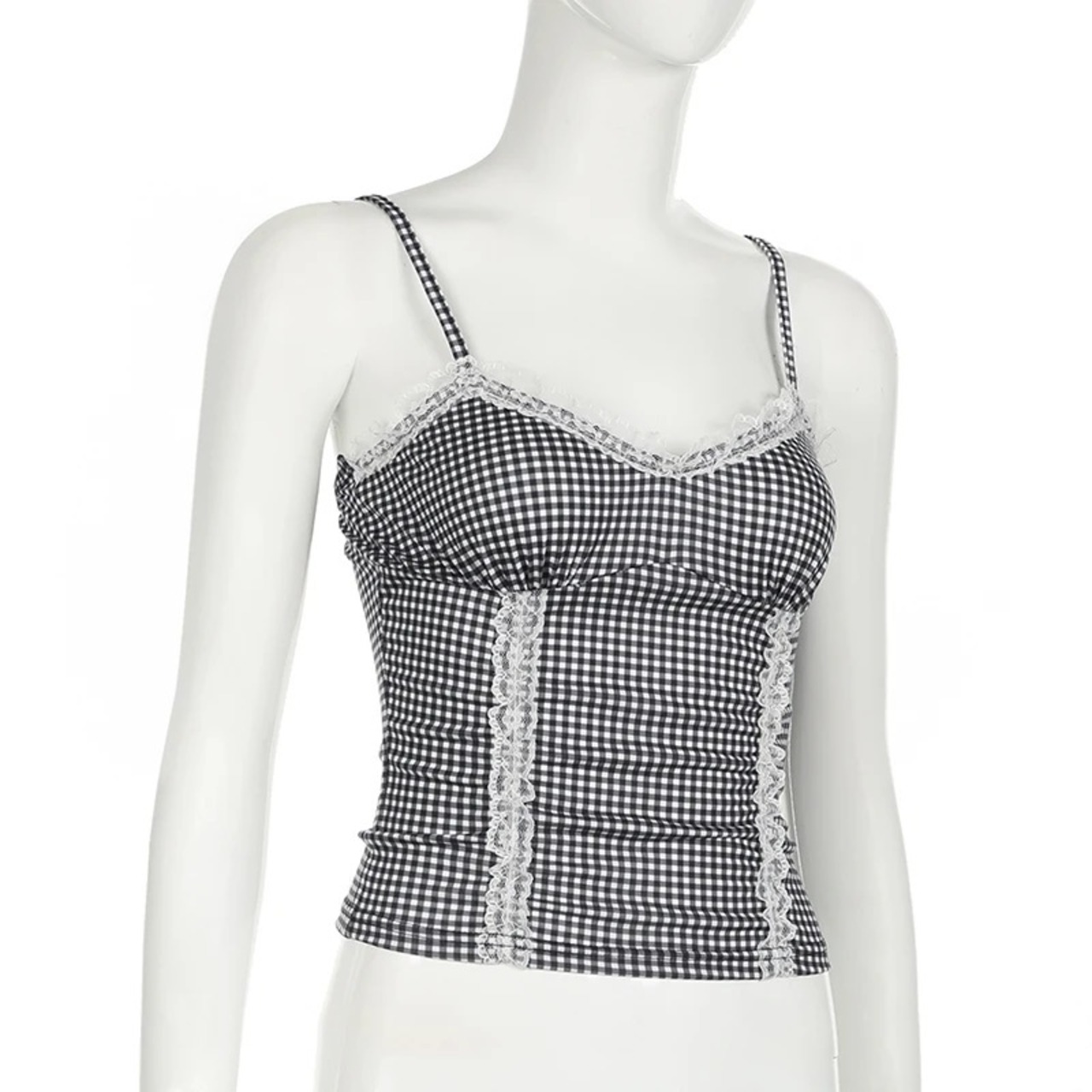 レース キャミソール ビスチェ ギンガムチェック柄 韓国 レディース ストリート系 バレエコア 海外 ギャル 夏 コーデ ファッション 8T-315