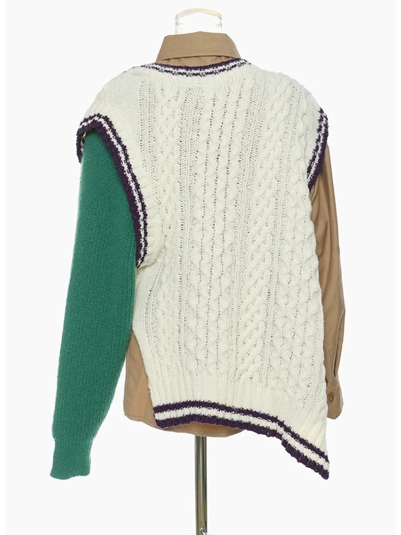 リメイク シャツ ニット 長袖 重ね着風 韓国 ストリート モード系 秋 冬 春 トップス レディース 8T-355