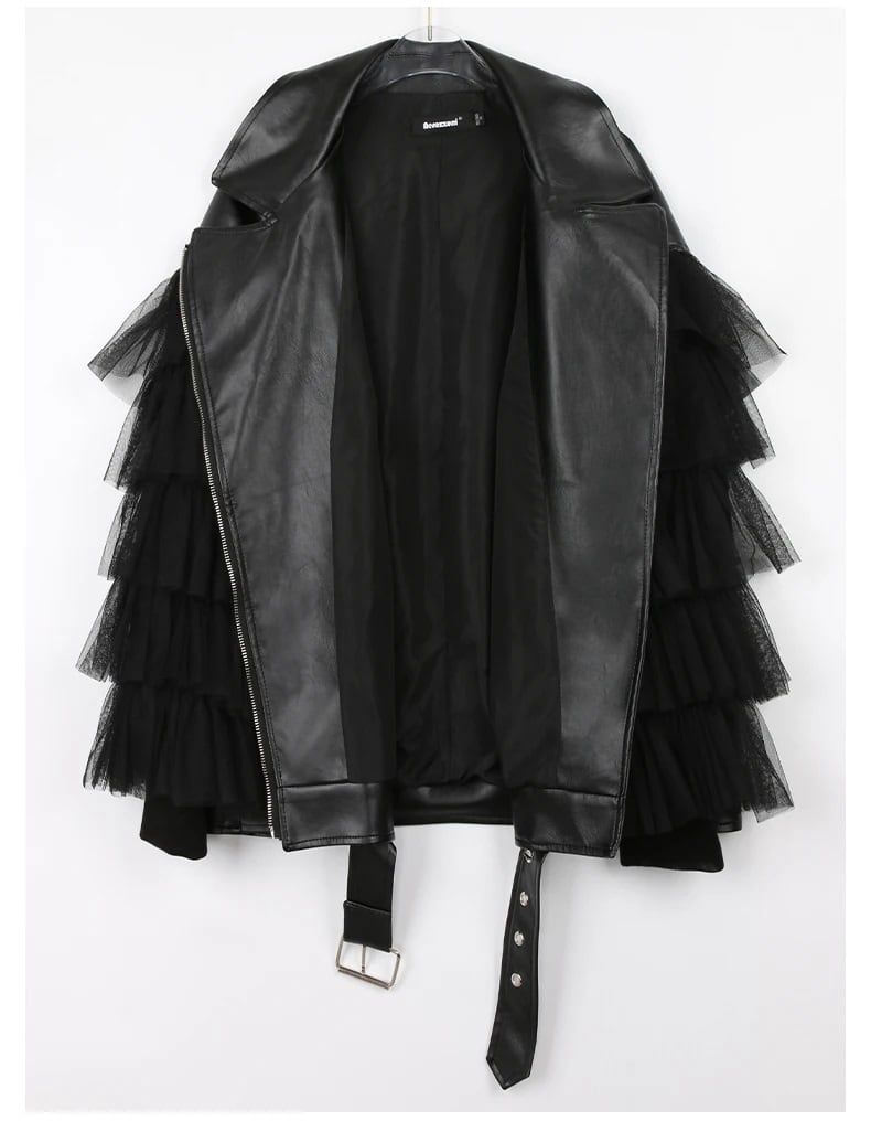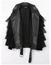 ライダース ジャケット チュール フリル レザー 韓国 ストリート モード系 ダンス 衣装 K-POP ギャル 秋 冬 春 アウター レディース 8AU-33