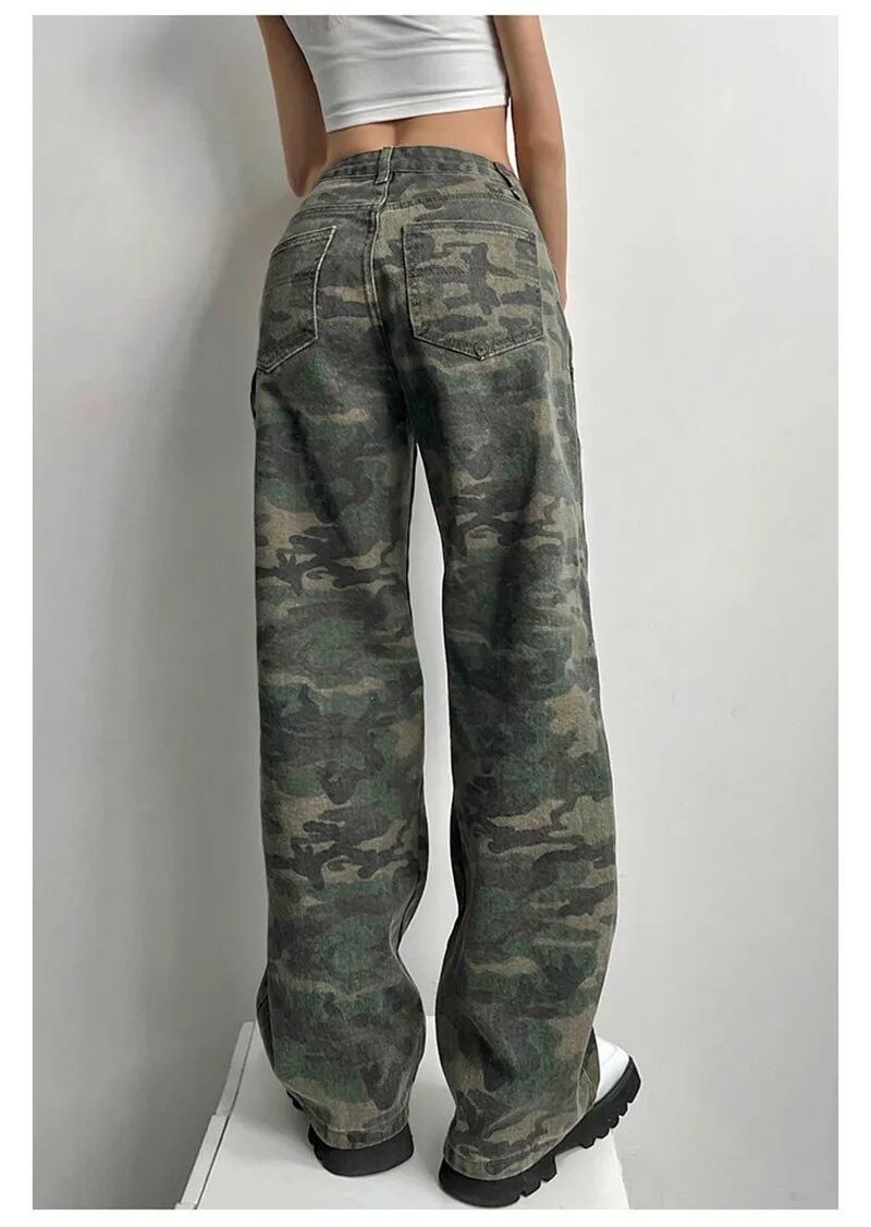 迷彩柄 ロング パンツ 韓国 ストリート系 Y2K グランジ ダンス 衣装 K-POP レディース ファッション 8PA-78