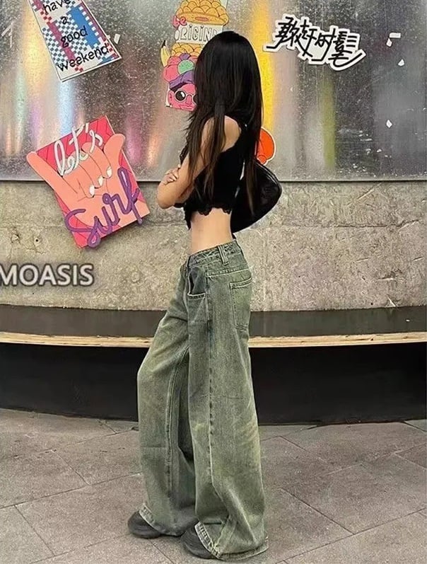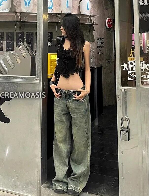 デニム パンツ ジーンズ 韓国 レディース ストリート系 グランジ Y2K ダンス 衣装 K-POP HIPHOP ギャル ファッション 8J-144