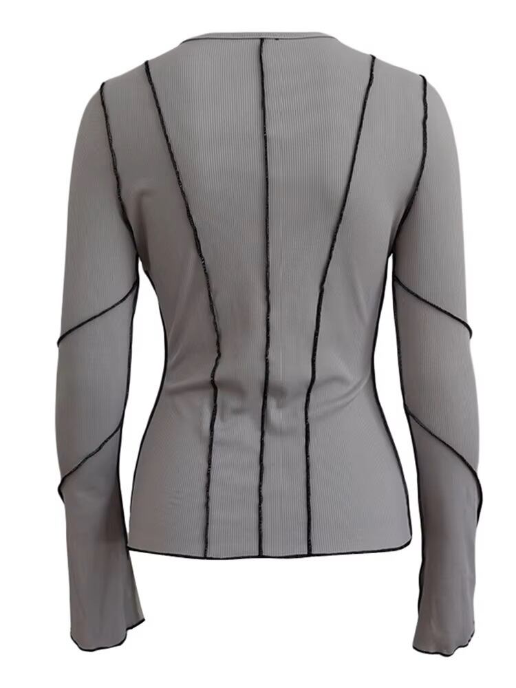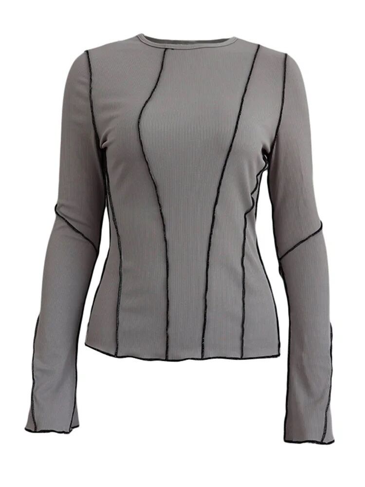 パイピング Tシャツ ロンT 長袖 トップス 韓国 ストリート モード系 レディース 8T-388