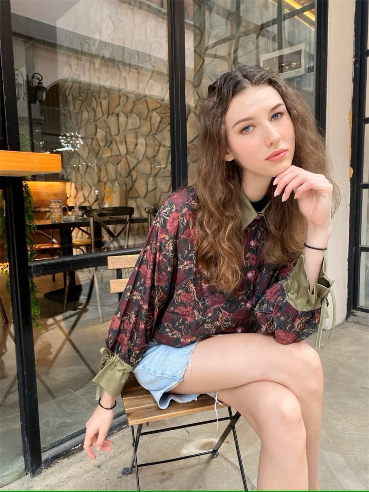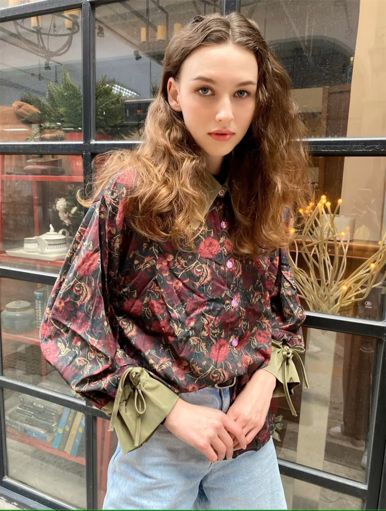 花柄 長袖 シャツ ブラウス 韓国 ストリート系 多系統 レディース ファッション 8T-394