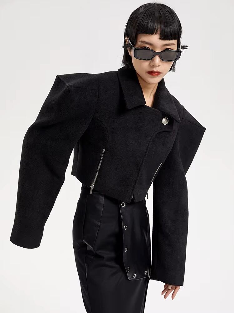 ショート丈 ジャケット ファスナー 韓国 ストリート モード系 レディース 8AU-57