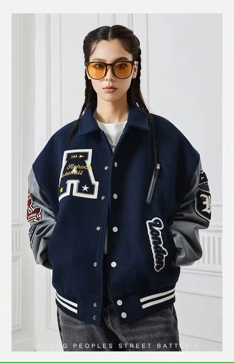 スタジャン スタジアム ジャンパー ブルゾン ワッペン 韓国 ストリート系 ダンス 衣装 グランジ K-POP HIPHOP レディース 8AU-64