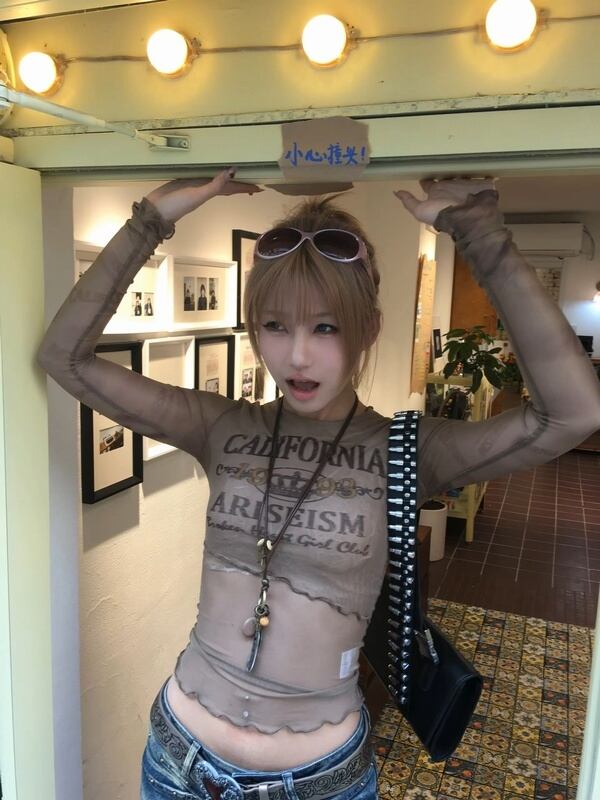 シアー ロゴ 長袖 トップス ロンT Tシャツ 韓国 ストリート系 Y2K ダンス 衣装 K-POP HIPHOP グランジ レディース ファッション 8T-414