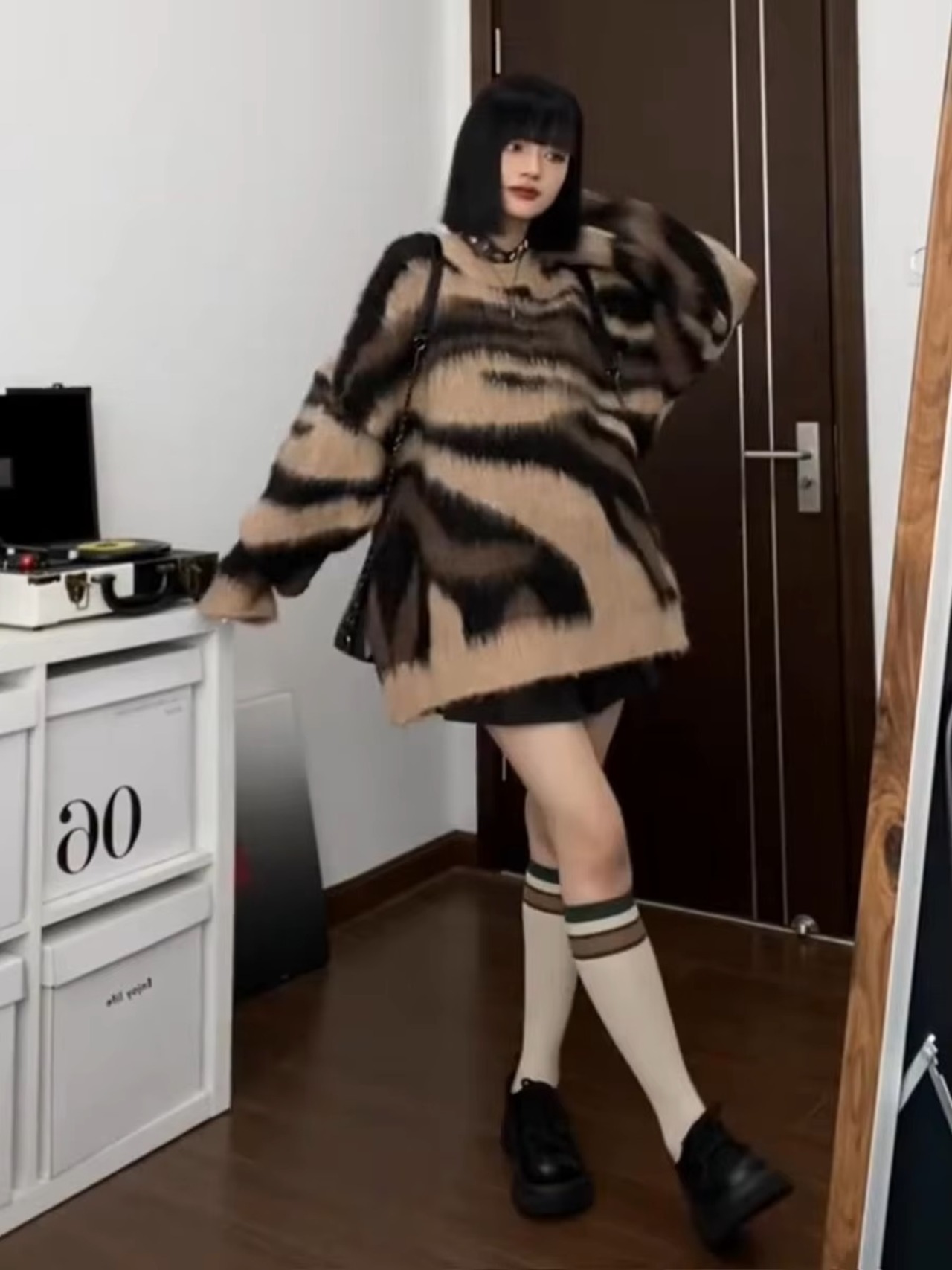 シャギー ニット セーター カモフラ 幾何学模様 ボーダー柄 韓国 ストリート系 グランジ ギャル 冬 レディース 8NI-47