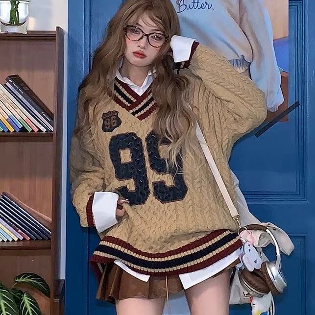 チルデン ニット セーター ナンバー ロゴ Vネック 韓国 ストリート系 グランジ ギャル 秋 冬 春 トップス レディース 8NI-52