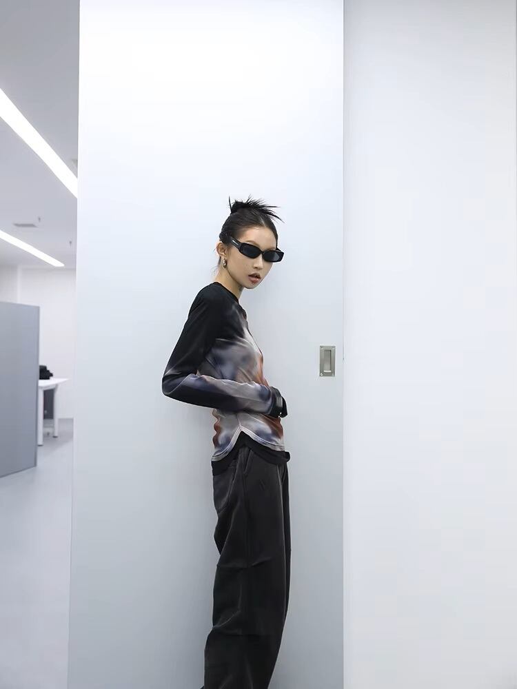 タイダイ柄 シアー ロンT トップス 長袖 韓国 ストリート モード系 ダンス 衣装 K-POP HIPHOP ギャル レディース 8T-427