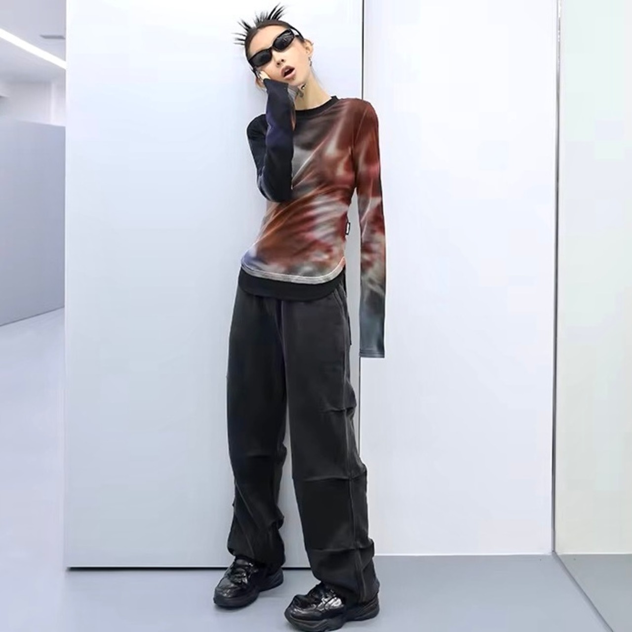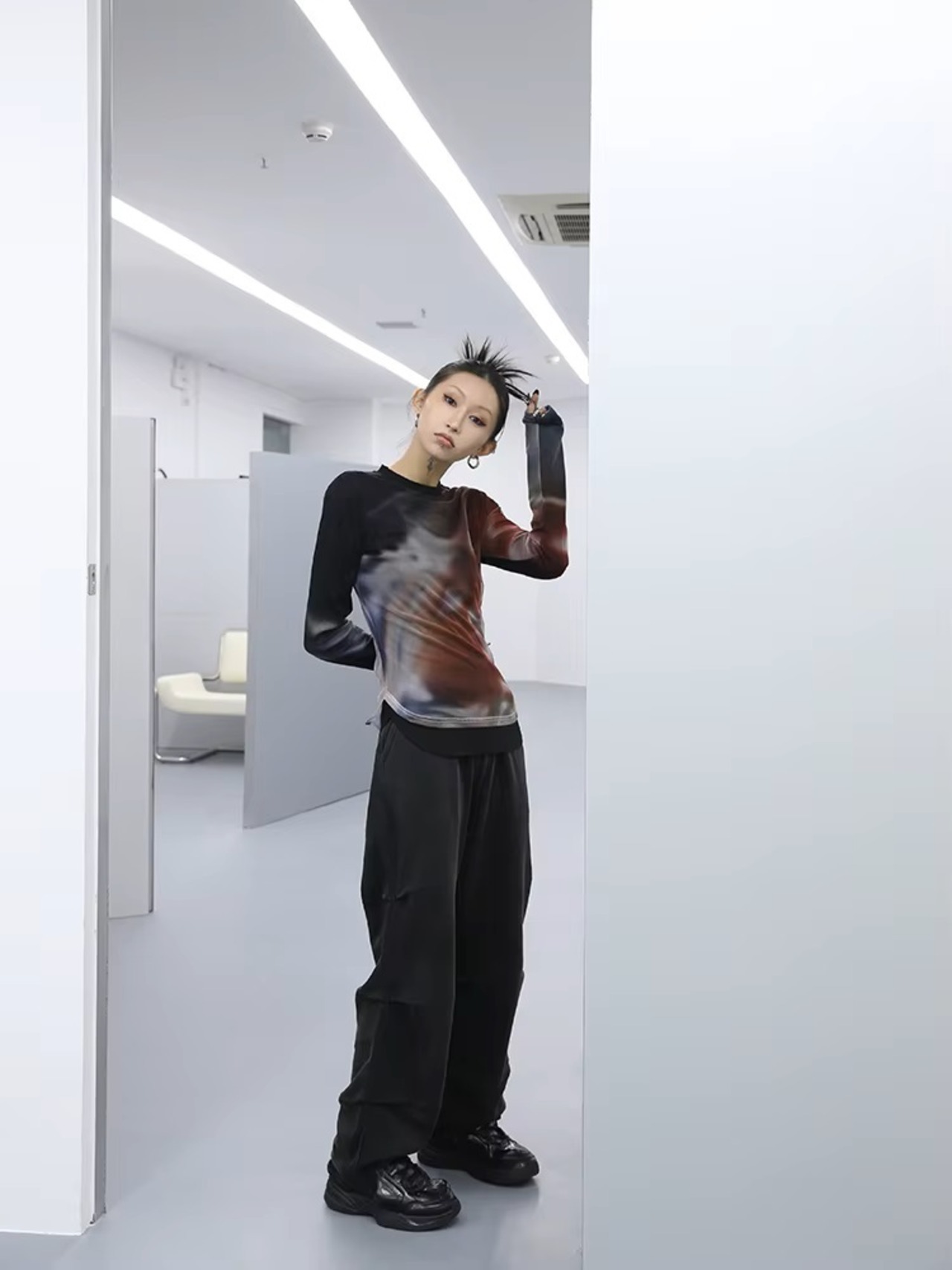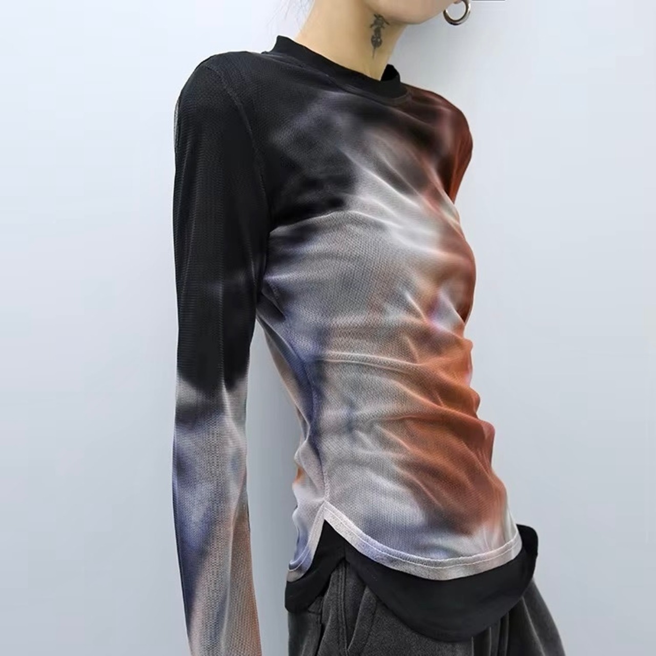 タイダイ柄 シアー 長袖 トップス ロンT 韓国 ストリート系 Y2K ダンス 衣装 K-POP HIPHOP ギャル レディース ファッション 8T-427
