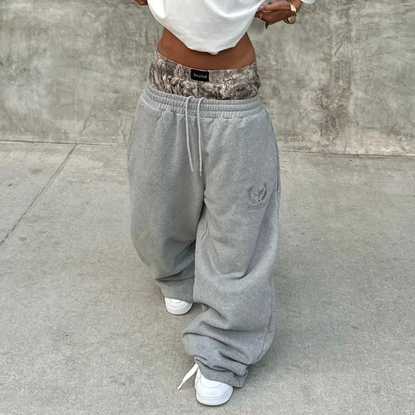 重ね着風 スウェット パンツ ダブルウエスト 韓国 海外 ストリート ダンス 衣装 Y2K K-POP HIPHOP レディース 8PA-86
