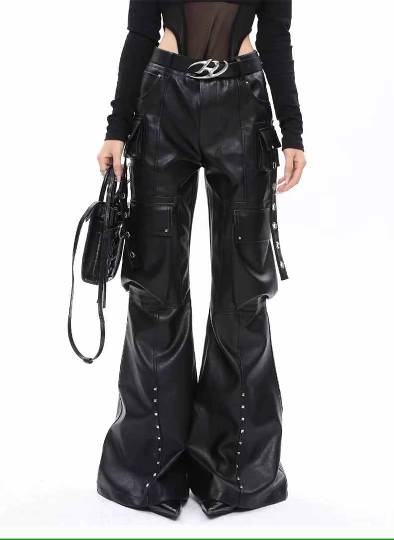 レザー フレア カーゴ パンツ 韓国 ストリート系 モード系 ダンス 衣装 K-POP HIPHOP ギャル オピウム レディース 8PA-87