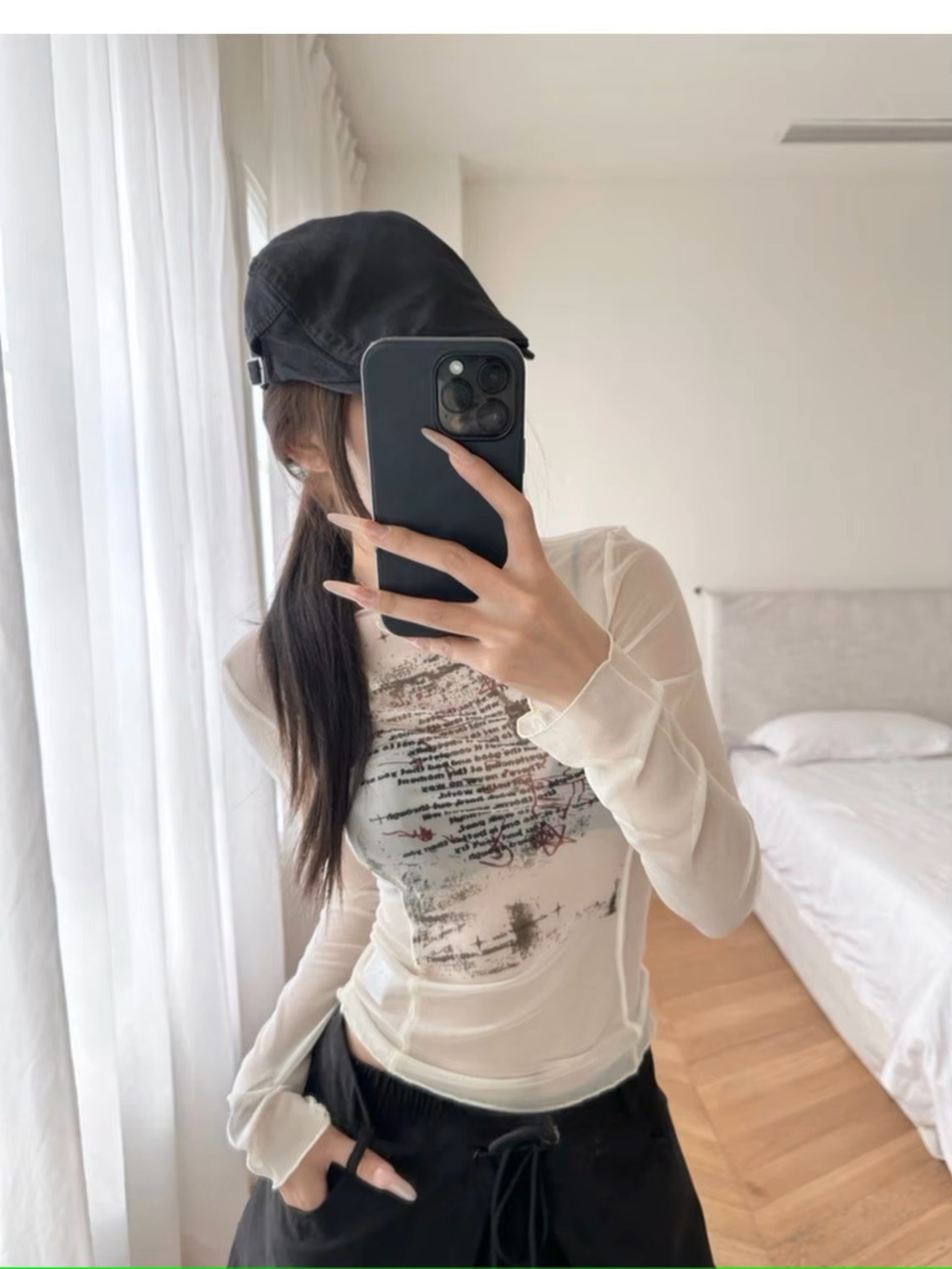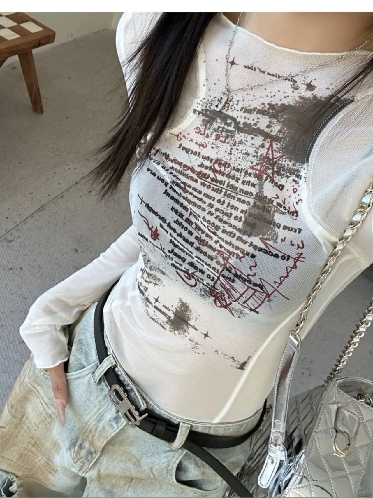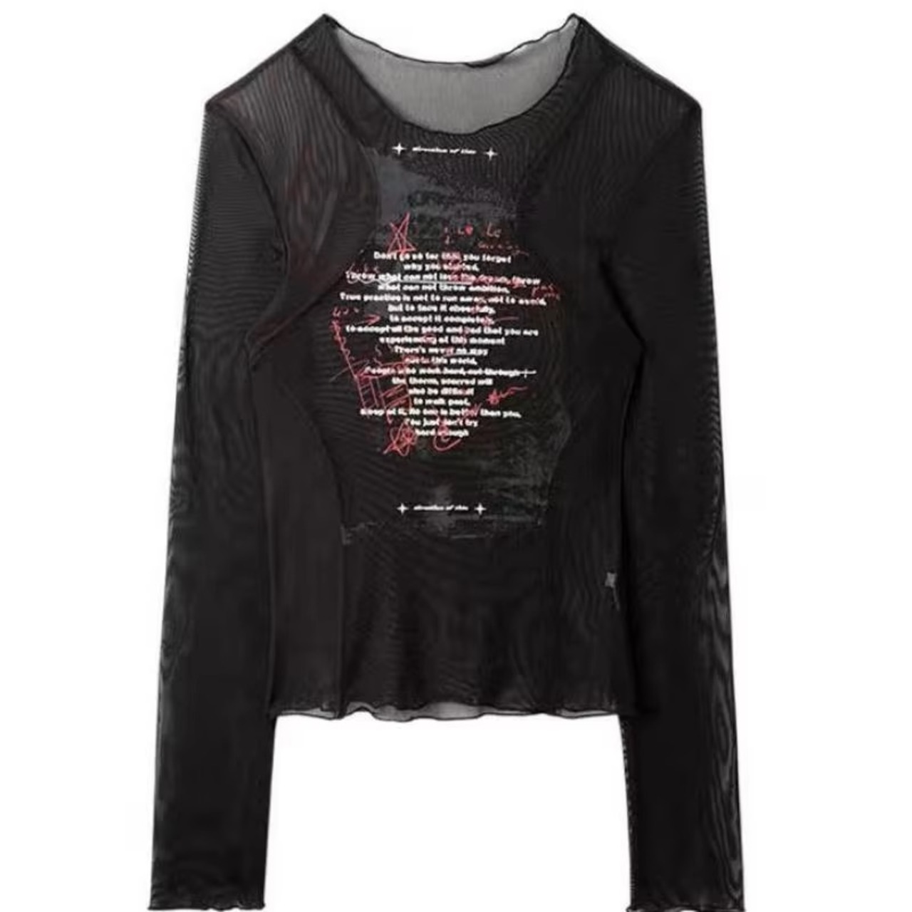 ロゴ シアー メッシュ 長袖 トップス ロンT Tシャツ 韓国 ストリート系 Y2K ダンス 衣装 K-POP HIPHOP ギャル レディース ファッション 8T-435