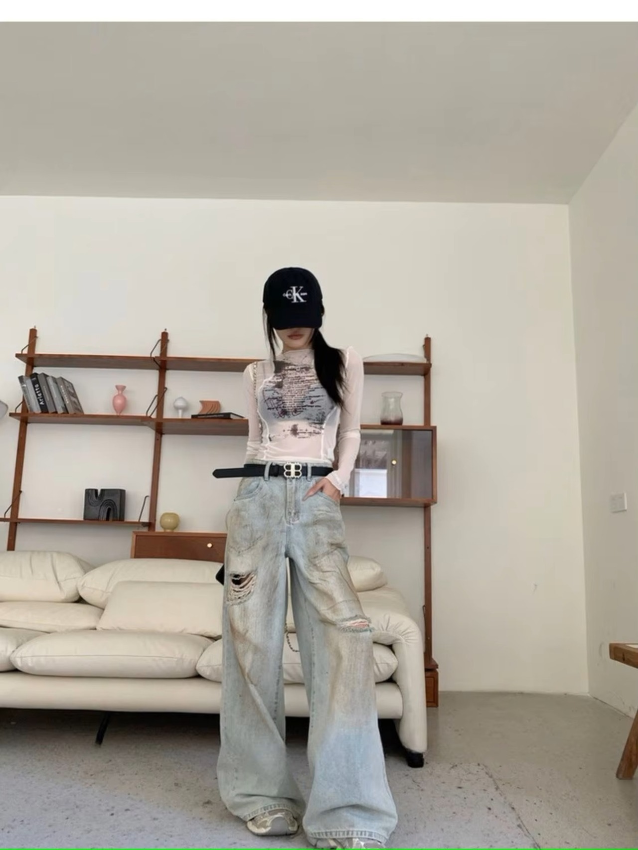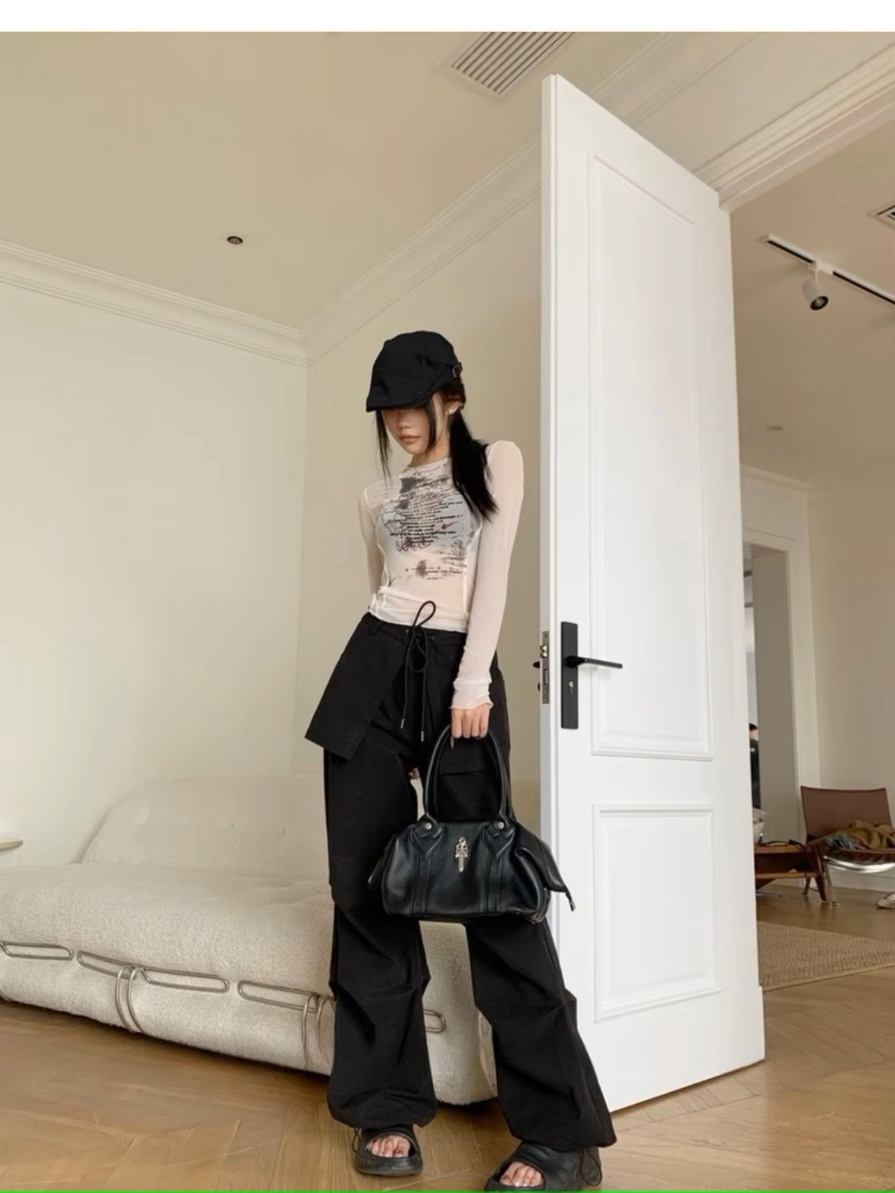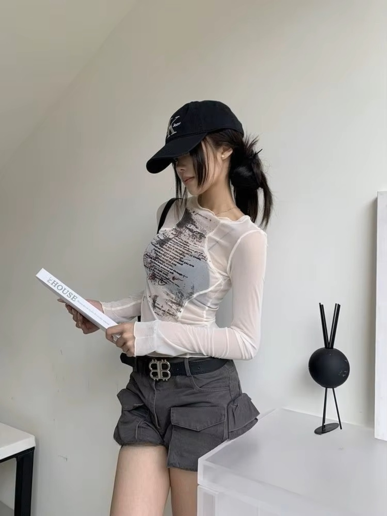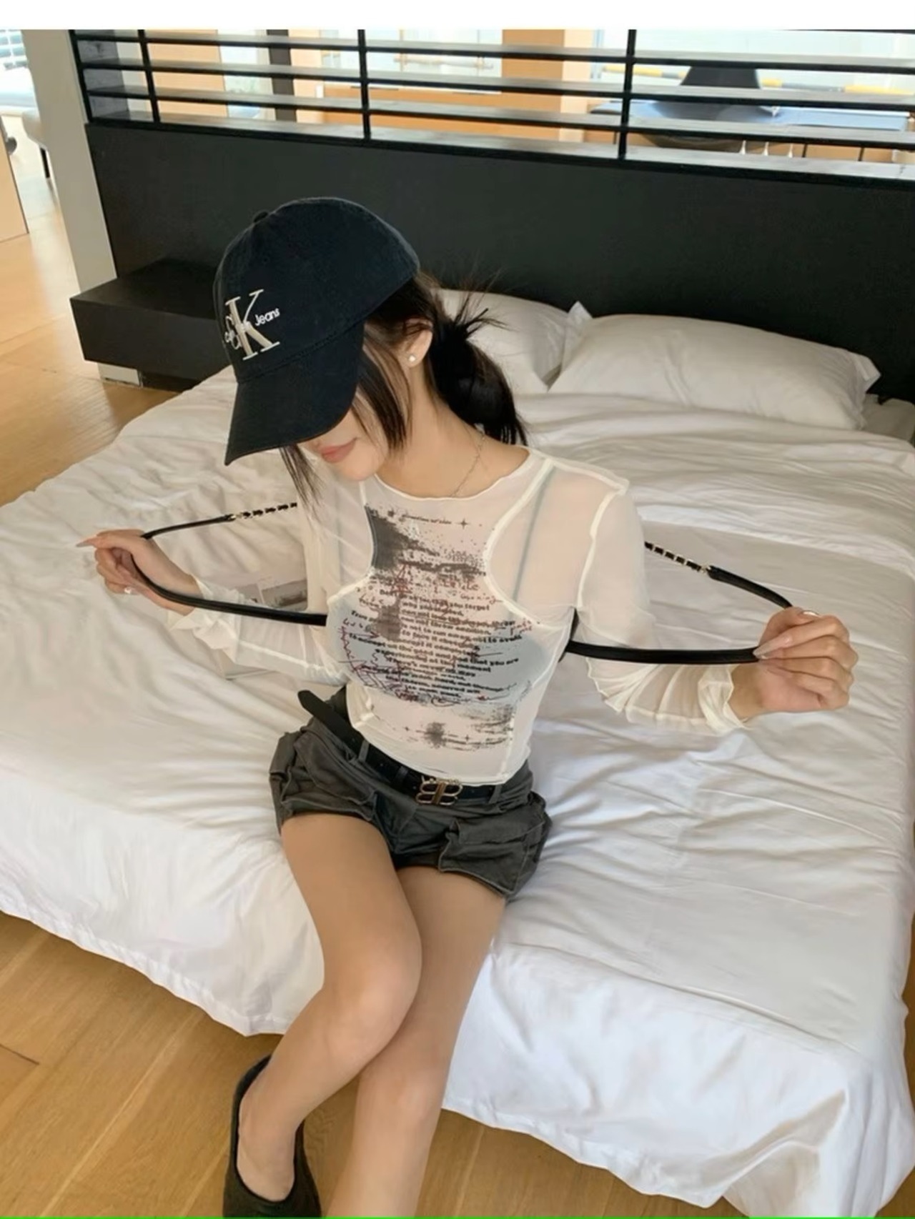 ロゴ シアー メッシュ 長袖 トップス ロンT Tシャツ 韓国 ストリート系 Y2K ダンス 衣装 K-POP HIPHOP ギャル レディース ファッション 8T-435