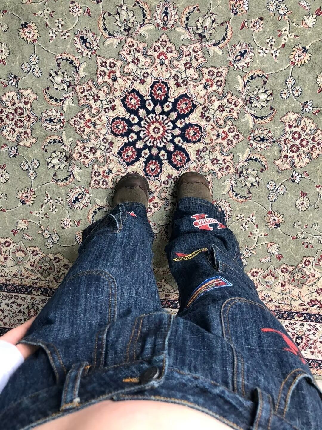 デニム カーゴ パンツ ワッペン ロゴ プリント 韓国 ストリート系 ダンス 衣装 Y2Kファッション K-POP HIPHOP ジーンズ レディース 8J-171