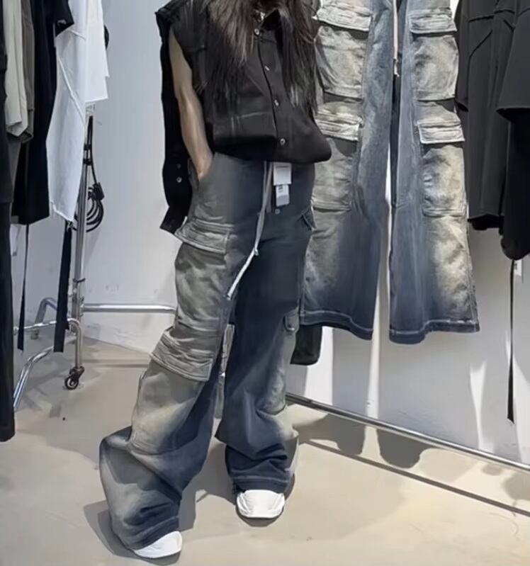 デニム カーゴ パンツ ウォッシュド グラデーション 韓国 ストリート系 ダンス 衣装 K-POP HIPHOP レディース 8J-175