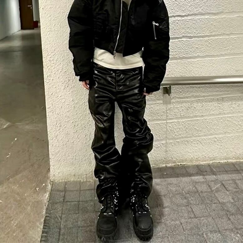 レザー フレア パンツ 韓国 ストリート系 ダンス 衣装 グランジ K-POP HIPHOP オピウム レディース 8PA-92