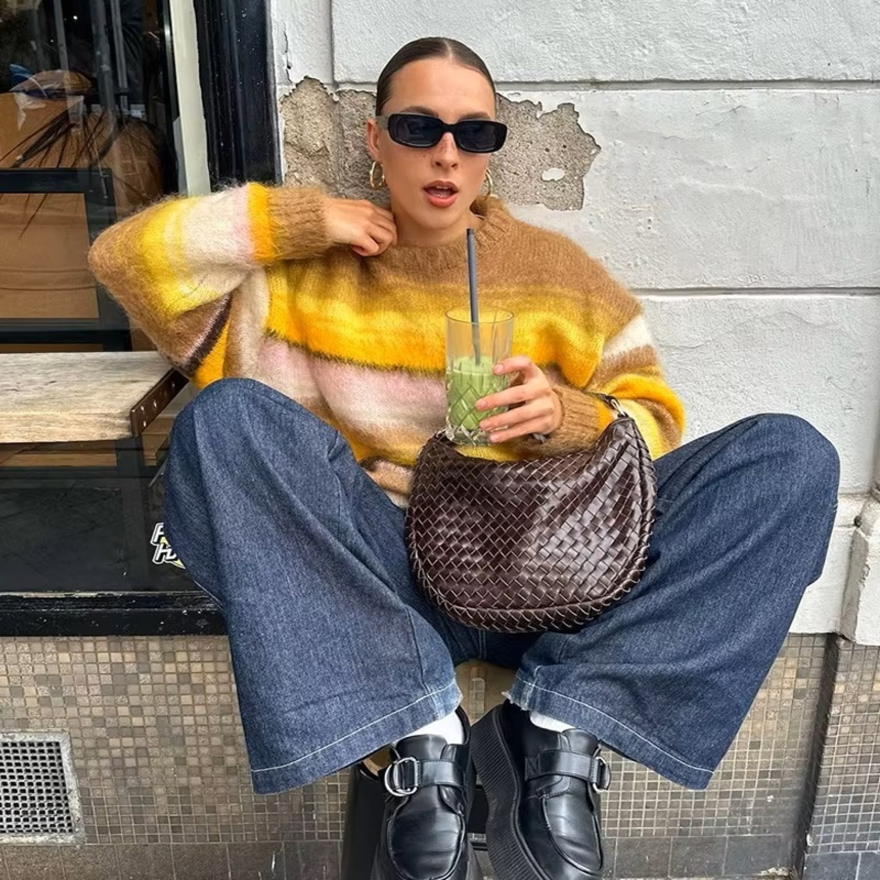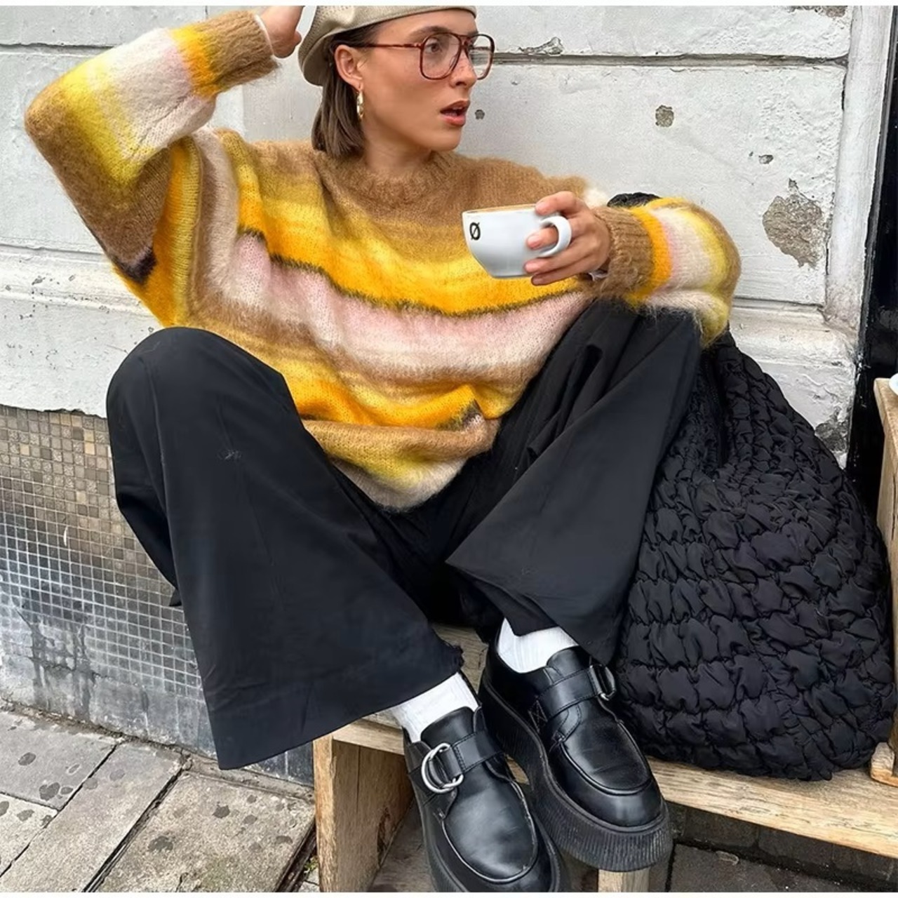モヘア セーター ニット トップス ボーダー柄 韓国 ストリート系 海外 ギャル 冬 レディース 8NI-59