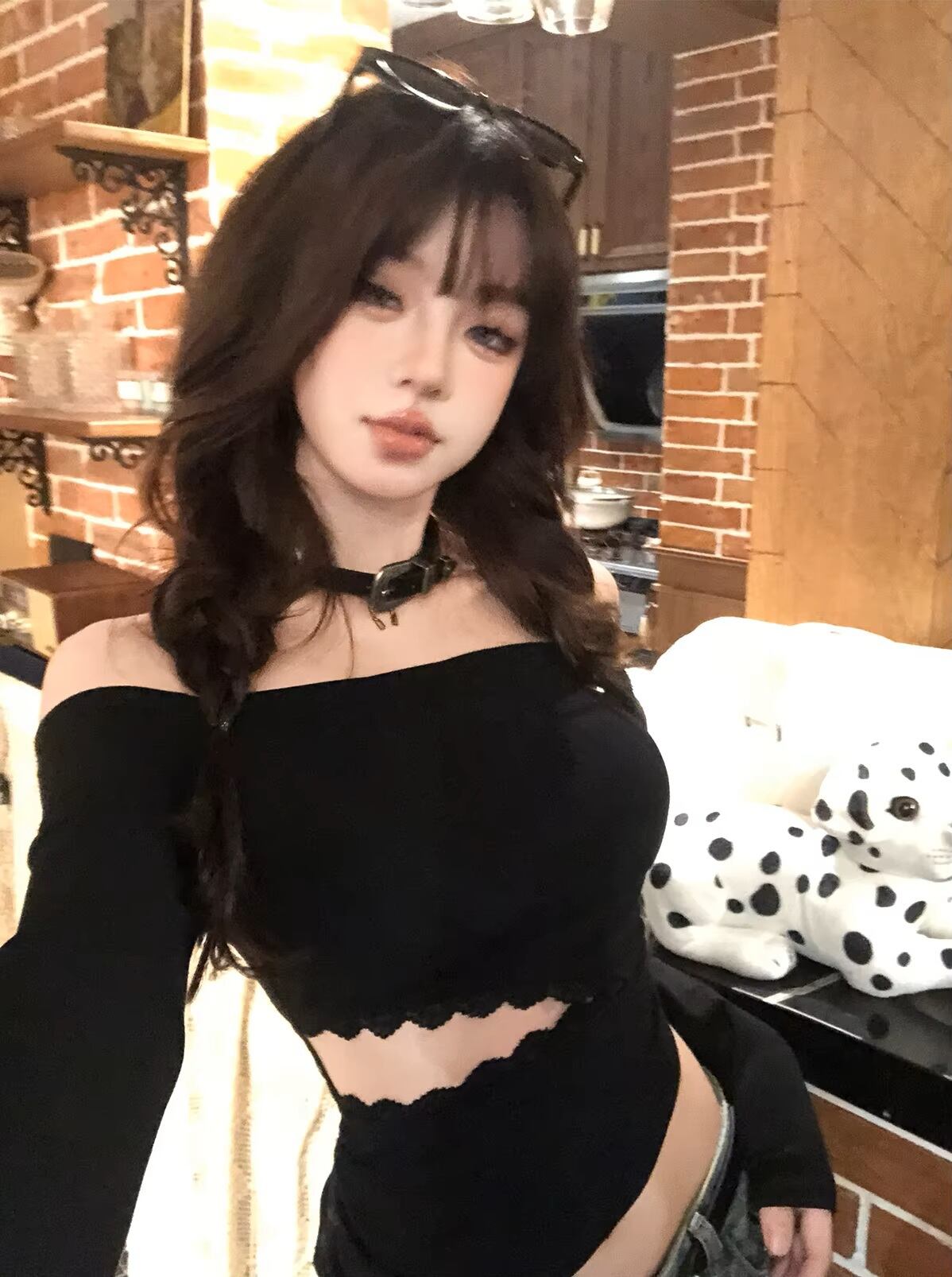 オフショル バックプリント シアー 長袖 トップス ロンT Tシャツ カット スリット 韓国 ストリート系 Y2K ギャル レディース ファッション 8T-459