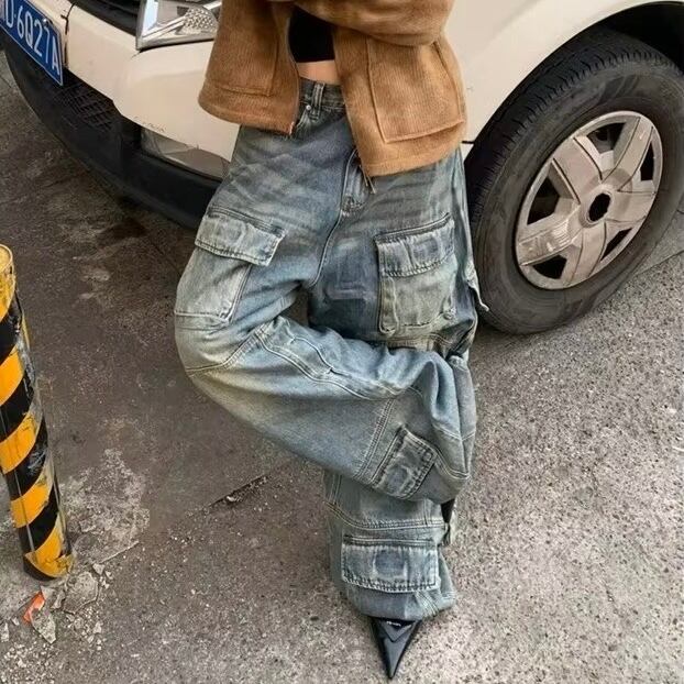カーゴ デニム パンツ ポケット 韓国 レディース ストリート系 ジーンズ グランジ ダンス 衣装 K-POP HIPHOP 8J-183